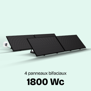 soit 1,10 €/W - Station solaire sunethic F1800 Bifacial Livraison offerte4 panneaux 450Wc Puissance : 1800Wc 1900€ TTCCOMMANDER