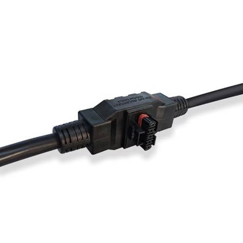 Câble Bus APSystems triphasé complet de 1 connectique, assemblé en usine avec son « Embout de terminaison pour câble Bus (2062050005) » et son « Connecteur CA mâle (2300711032) ».