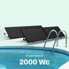 Sa structure en acier galvanisé, ses panneaux conçus pour résister aux environnements extérieurs exigeants et ses micro‑onduleurs parfaitement isolés garantissent une utilisation sûre et durable, même en présence d’humidité ou de projections d’eau. C’est une solution idéale pour valoriser un espace souvent inutilisé autour du bassin tout en produisant une énergie propre et rentable.